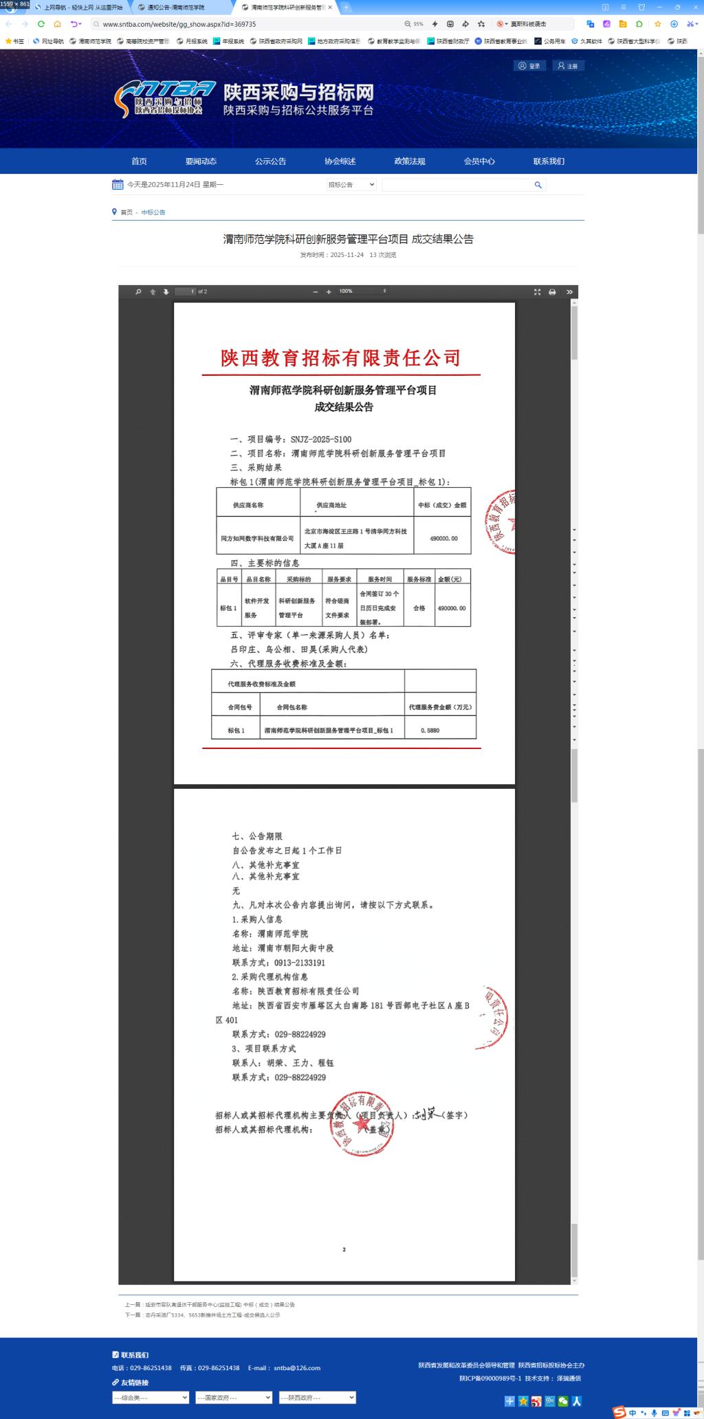 best365英国在线体育官网科研创新服务管理平台项目成交结果公告