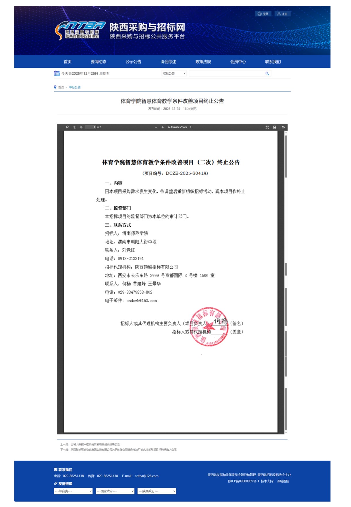 体育学院智慧体育教学条件改善项目终止公告