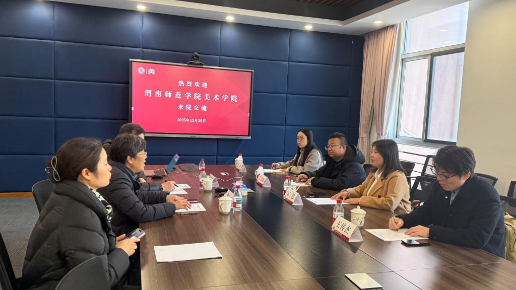 12月25日下午,调研团队下午来到华东师范大学美术学院,副院长郑文介绍了学院在学科发展、专业布局及教学改革方面的整体情况,重点分享了本科美术学专业及研究生书法篆刻方向在人才培养体系构建、课程内容创新及实践教学平台建设等方面的经验与成效。随后,双方与会人员围绕美术学及书法人才培养模式的构建与实施、专业课程体系建设与教学方法创新、实践教学与校企合作机制、毕业设计指导与成果转化等内容进行了深入交流与探讨。座谈会后,院长助理马俊营带领大家参观了美术学院漆艺术与综合材料实验室、人工智能+美育实验室、陶瓷艺术研究实验室等教学实验空间,并就传统艺术传承与前沿艺术科技融合话题等进行了现场交流。华师大美院在实验室建设和学科建设的优秀经验给调研团队留下了深刻的印象。