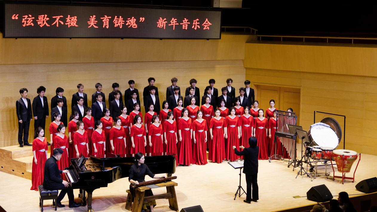 12月29日,“弦歌不辍 美育铸魂”——新年音乐会在逸夫楼音乐厅举行。新年音乐会由音乐学院、莫斯科艺术学院、渭南市音乐家协会主办、渭南市文学艺术界联合会担任艺术指导,青墨筝团、交响乐团、合唱团及专业师生联袂献艺。副校长王海峰,党委委员、统战部部长张勤恳出席活动。