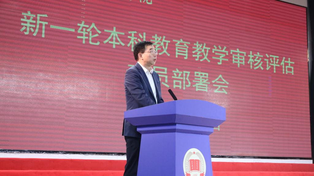 党委书记卓宇就做好新一轮本科教育教学审核评估工作作了动员讲话,他以提高政治站位,充分认识审核评估工作的重要意义,把握“四个要点”,谋细做实审核评估工作,齐心协力,确保审核评估工作圆满完成三个方面对审核评估工作做出明确要求。他强调,人才培养质量是学校立校之本,全校上下要以审核评估为契机,凝心聚力谋发展,铆足干劲加油干,积势蓄能攀新高,以“功成不必在我”的思想境界和“功成必定有我”的历史担当,拿出拼的勇气、闯的劲头、争的意识,振奋精神、负重前行,营造最好的氛围,创建最佳的环境,展现最优的状态,全力以赴做好评建工作,用高水平的工作成效谱写学校高质量发展新篇章。
